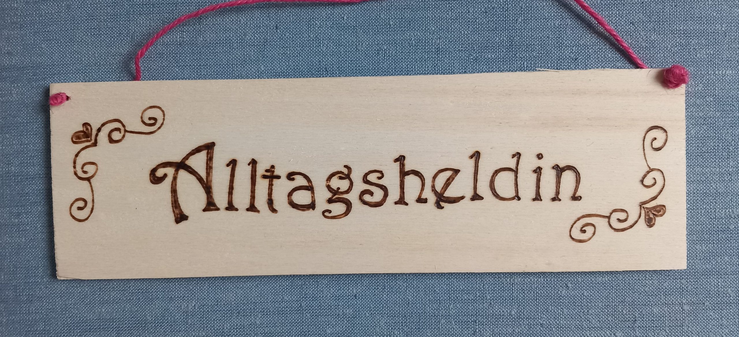 Liebevoll in Handarbeit gebranntes Holzschild
