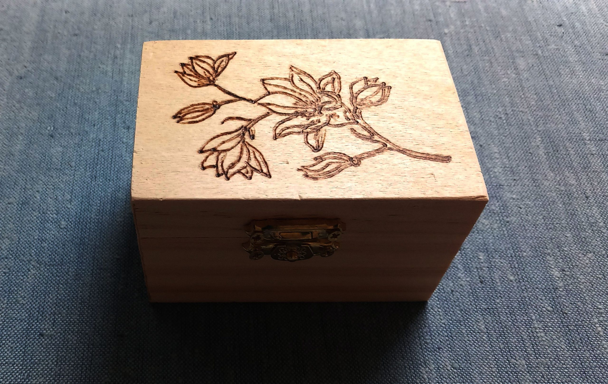 Holzkisterl mit liebevoll eingebranntem Blumenmotiv